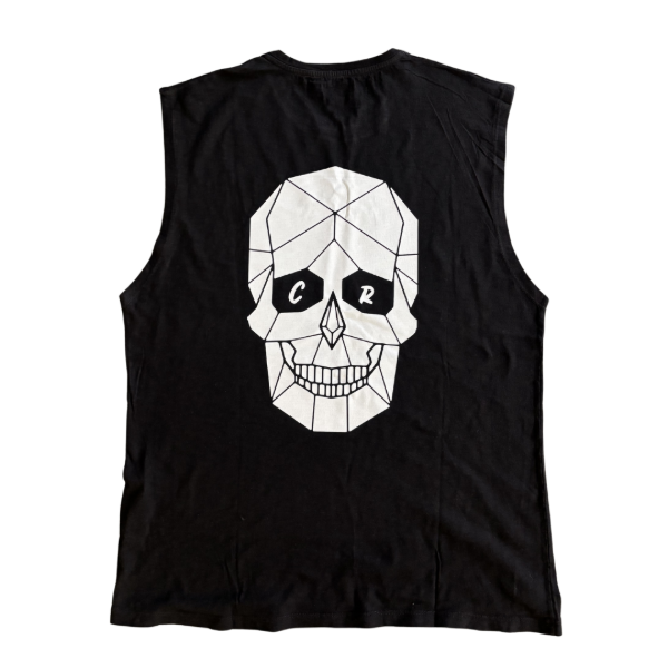 Remera sin mangas color negro con estampado en blanco