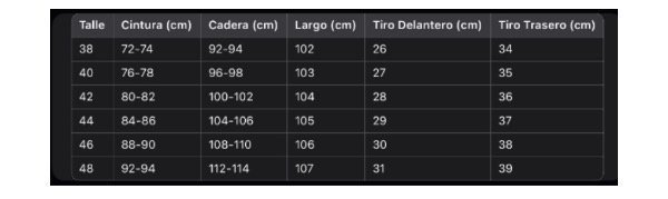 Los talles son clásicos del 38 al 48